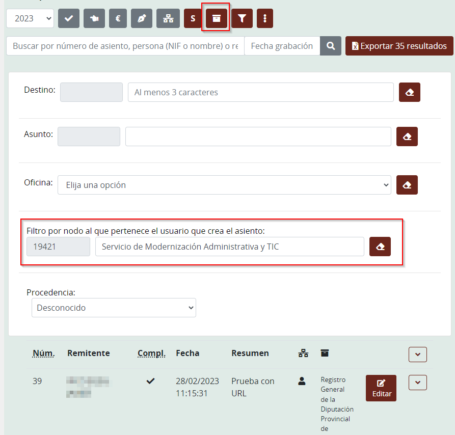 Nuevo filtro de remitentes para buscar por texto exclusivamente en el nombre y documento de los remitentes. El filtro de búsqueda por texto a veces ofrecía demasiados resultados.